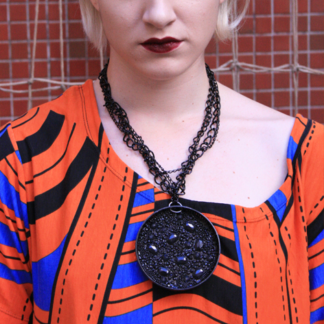 The collection consists of 10 unique pieces, handmade by me and a specialist turner who cut shells and spoons in stainless steel like paper cutouts scratched with graphite. In this way, in addition to identifying with the idea generated by each piece, the sense of exclusivity will be stronger. Necklaces can be open and exposed universes or closed and translucent ones, but they communicate clearly with the world, just like an authentic woman.